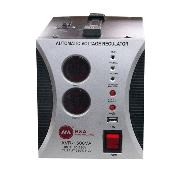 The H&A AVR-1500VA is a robust, high-performance automatic voltage regulator designed to deliver consistent, regulated power to protect your home and office equipment. Featuring a durable design and advanced circuitry, this unit ensures maximum lifespan and efficiency for your valuable electronics.