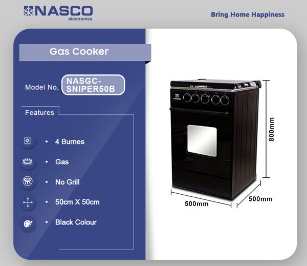 Transform your cooking experience with the Nasco SNIPER50B Gas Cooker – reliable performance, elegant design, exceptional value!